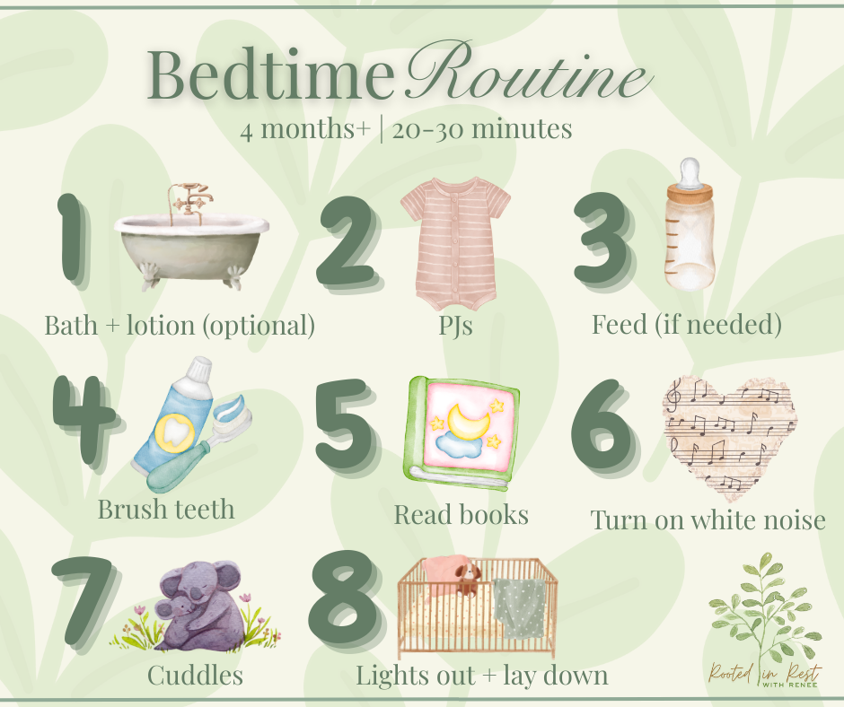 Here is an example of a bedtime routine for babies around 4 months and older:
